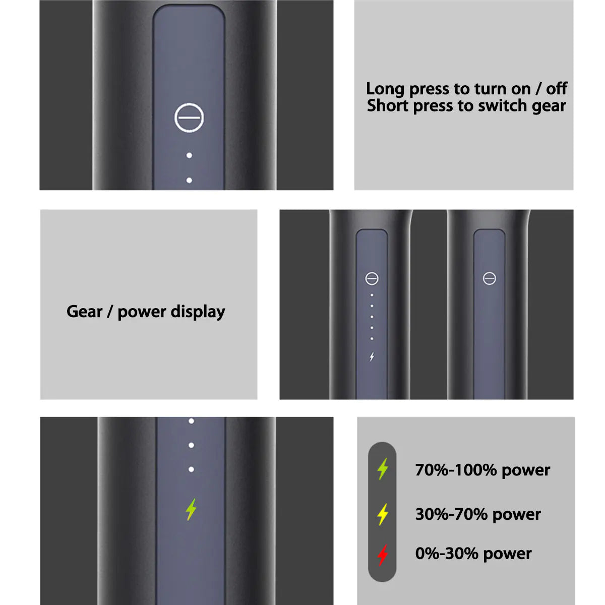Tailor your massage experience with a variety of adjustable settings. Choose from 5 speed levels and 3 transmission modes to find the perfect intensity for your needs. The massager features a torque range of 0-7.5 kg/cm in its upgraded version, providing a robust and powerful massage. Depending on the selected mode, enjoy up to 6 hours of continuous use on a single charge, thanks to its high-capacity battery.